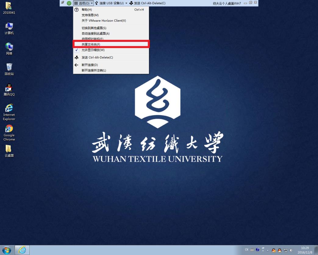步骤1:虚拟桌面顶端点击“选项”,选择“共享文件夹(F)”菜单