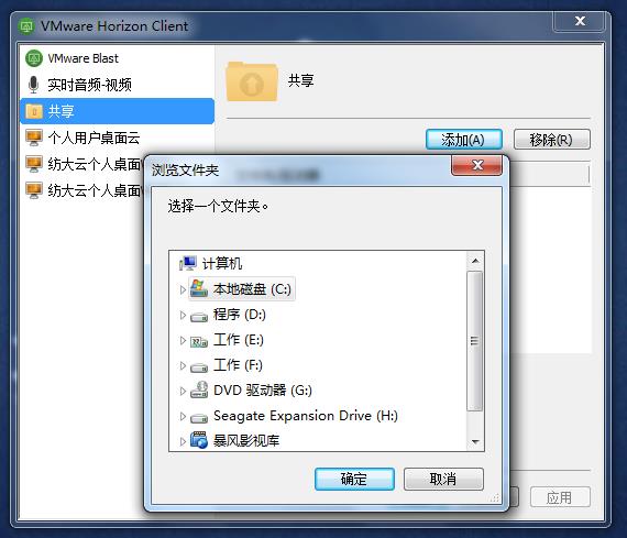 步骤2:添加需要共享的本地文件或者文件夹,点击确定。