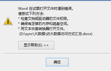 Win8云桌面的Office安装的是2013版本,使用过程中发现打开office文档提示权限或资源不足,如下图: